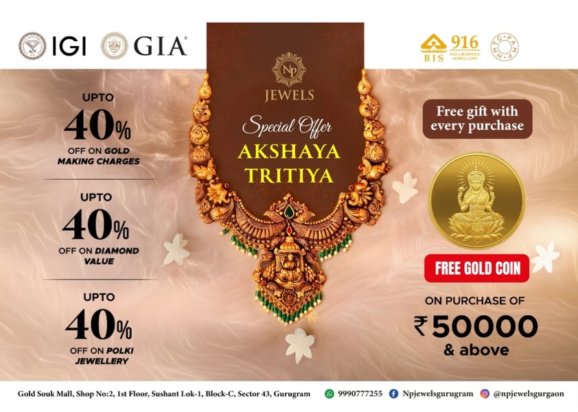 Akshaya Tritiya 2026 brings a golden chance to build wealth and joy. NP Jewels delivers with up to 40% off on pure gold and certified diamonds, all backed by tradition and quality. You get savings, sparkle, and that auspicious boost in one package.